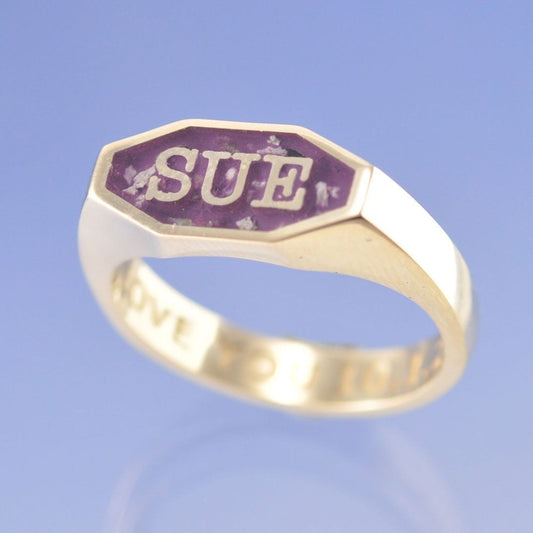 Cremation Ash Ring - Initial Signet Ring - Octagon.